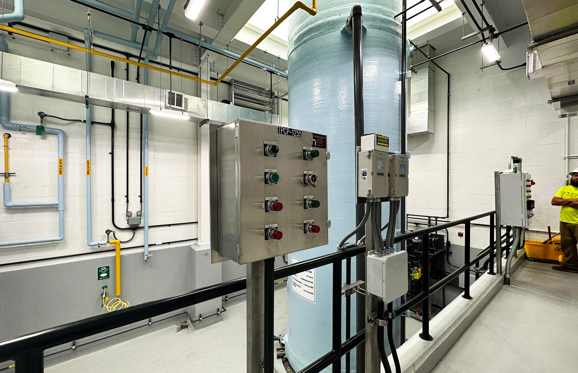 A stainless steel control panel with red and green buttons is mounted on a metal railing next to a large, light blue industrial tank and complex network of pipes in a clean utility room. A stainless steel control panel with red and green buttons is mounted on a metal railing next to a large, light blue industrial tank and complex network of pipes in a clean utility room.A stainless steel control panel with red and green buttons is mounted on a metal railing next to a large, light blue industrial tank and complex network of pipes in a clean utility room.A stainless steel control panel with red and green buttons is mounted on a metal railing next to a large, light blue industrial tank and complex network of pipes in a clean utility room. -