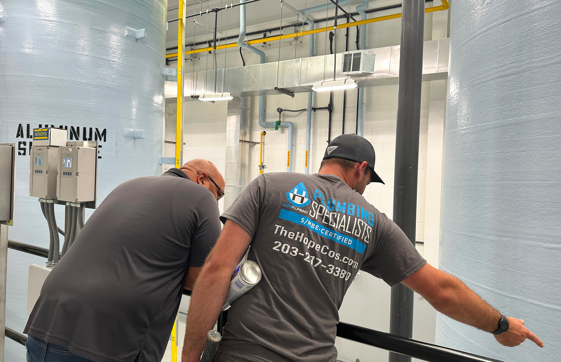 A plumber, viewed from the back, wears a gray uniform shirt with the 'Hope Plumbing Specialists' logo and contact information, working inside a large commercial or industrial facility. A plumber, viewed from the back, wears a gray uniform shirt with the 'Hope Plumbing Specialists' logo and contact information, working inside a large commercial or industrial facility.A plumber, viewed from the back, wears a gray uniform shirt with the 'Hope Plumbing Specialists' logo and contact information, working inside a large commercial or industrial facility.A plumber, viewed from the back, wears a gray uniform shirt with the 'Hope Plumbing Specialists' logo and contact information, working inside a large commercial or industrial facility. -